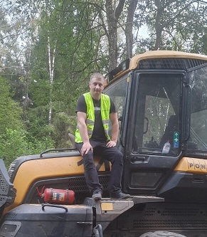 сандр Игоревич Муратов. Он занимает должность оператора лесозаготовительного комплекса — форвардера. Форвардер (транспортер- погрузчик) — самоходная лесозаготовительная техника, предназначенная для транспортировки уже срубленной и обработанной древесины с места рубки до места складирования или погрузки. По словам Александра Игоревича: «В отличие от трилевочников, форвардер не волочит лес по земле, а аккуратно загружает его в кузов при помощи манипулятора. В мои обязанности оператора входят: сбор сортимента леса по вырабатываемой лесосеке, частичная его сортировка, перемещение на погрузочную площадку и выгрузка по необходимым сортиментам. При работе необходимо следить за состоянием техники, поддерживать ее в исправном состоянии. Моим напарником по работе является оператор харвестера Алексей Александрович Толстоухов. Туда, где харвестер напилил и оставил древесину, подъезжает форвардер, захватывая манипулятором бревна из кузова. Управляю техникой при помощи кнопок и джойстика, все устроено технологично. Есть бортовой компьютер.
