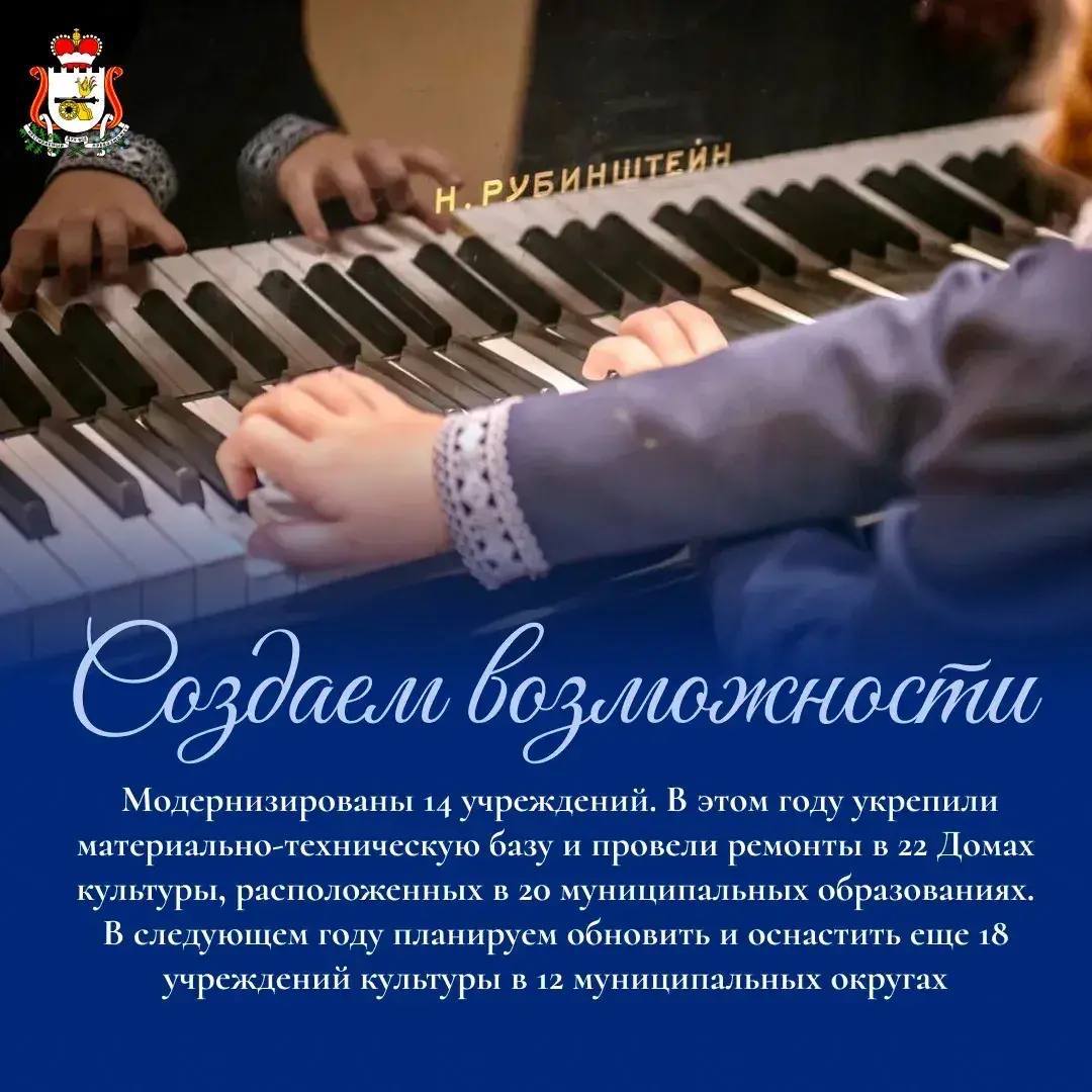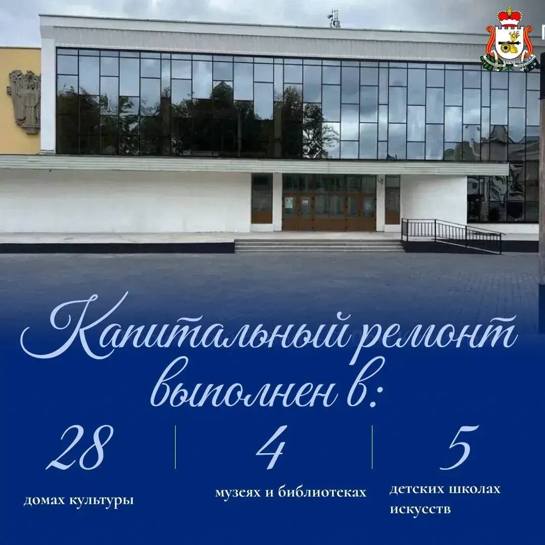 В 2025 году отремонтировали 28 домов культуры, 4 музея, 5 детских школ искусств и 4 библиотеки. Также в рамках партийного проекта «Культура малой Родины» укрепили материально-техническую базу 22 домов культуры в различных муниципальных округах.