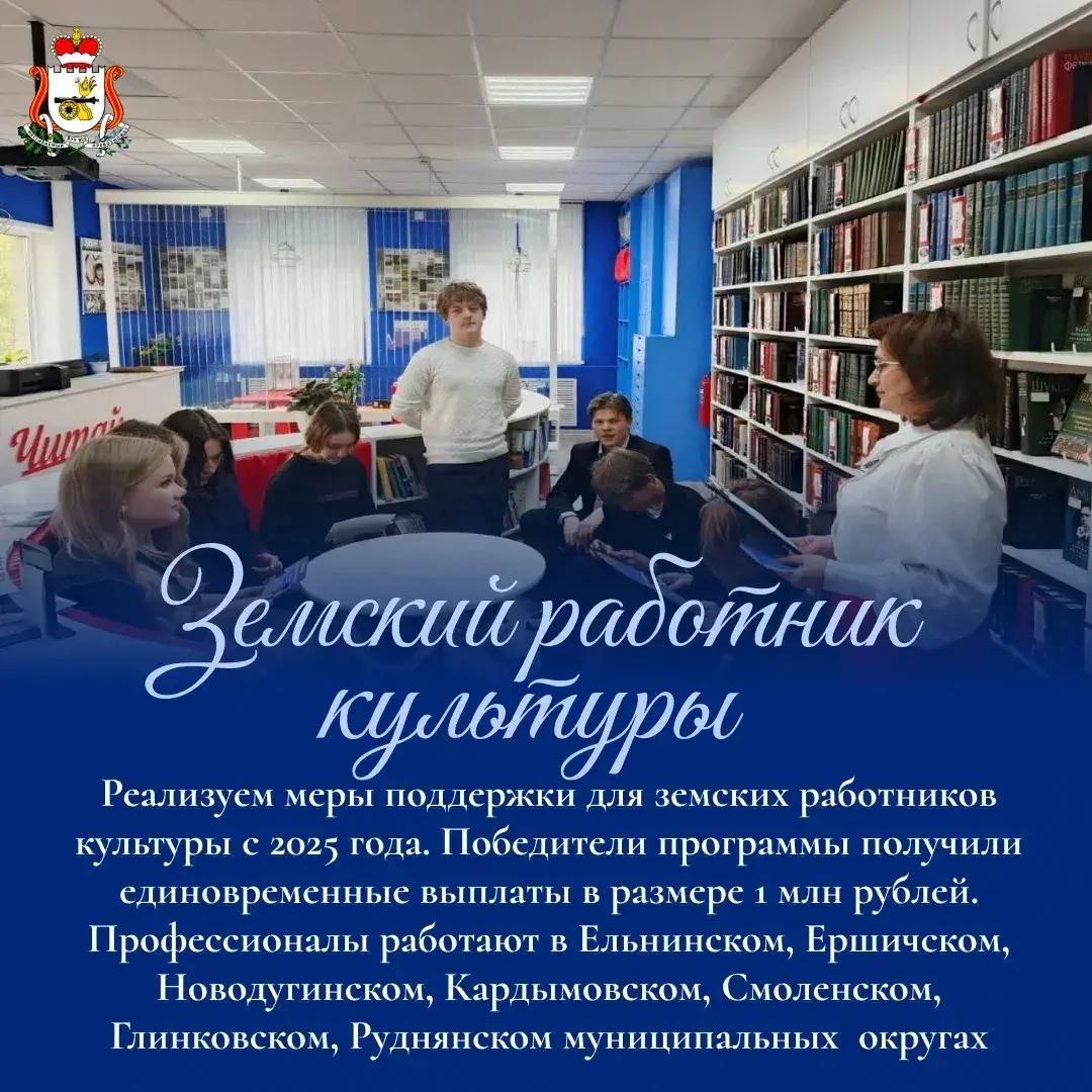 По поручению Президента России Владимира Владимировича Путина (https://t.me/news_kremlin) в 2025 году стартовала программа «Земский работник культуры». Ее участники, прошедшие конкурсный отбор, приезжают работать в сельскую местность и небольшие города и получают единовременную выплату в размере 1 миллиона рублей. В этом году по программе в учреждения культуры привлекли 8 человек. В 2026 году планируем трудоустроить еще 20 сотрудников.