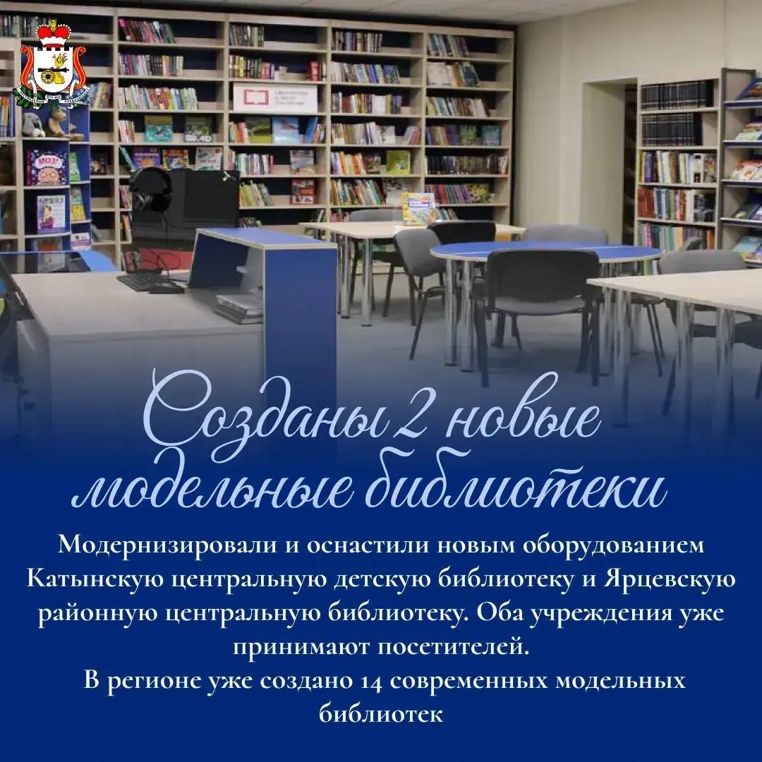 В 2025 году в Кардымовском и Ярцевском муниципальных округах открыли две современные модельные библиотеки. Теперь в области действует 14 таких библиотечных пространств, которые предоставляют возможности для обучения и развития.