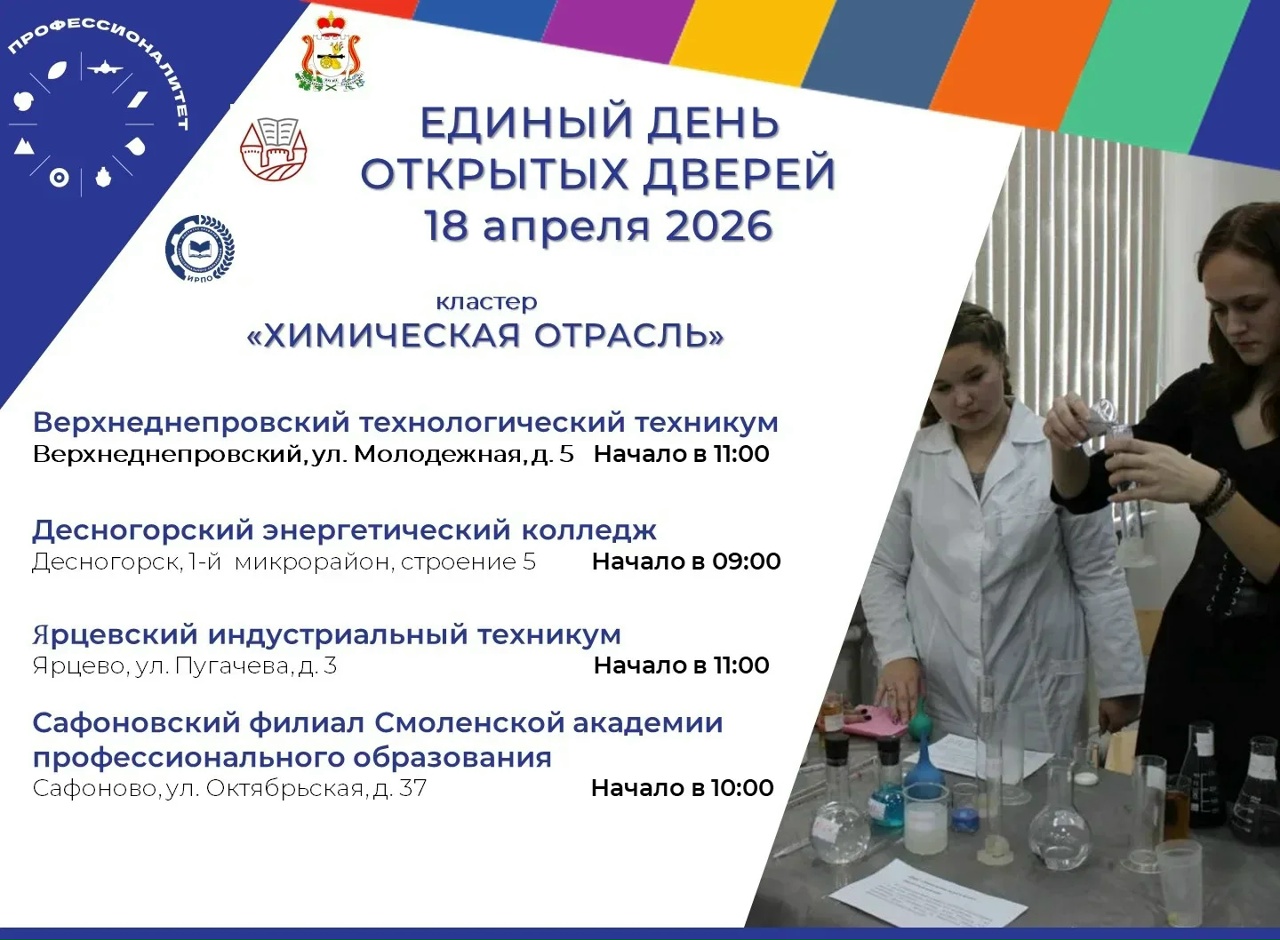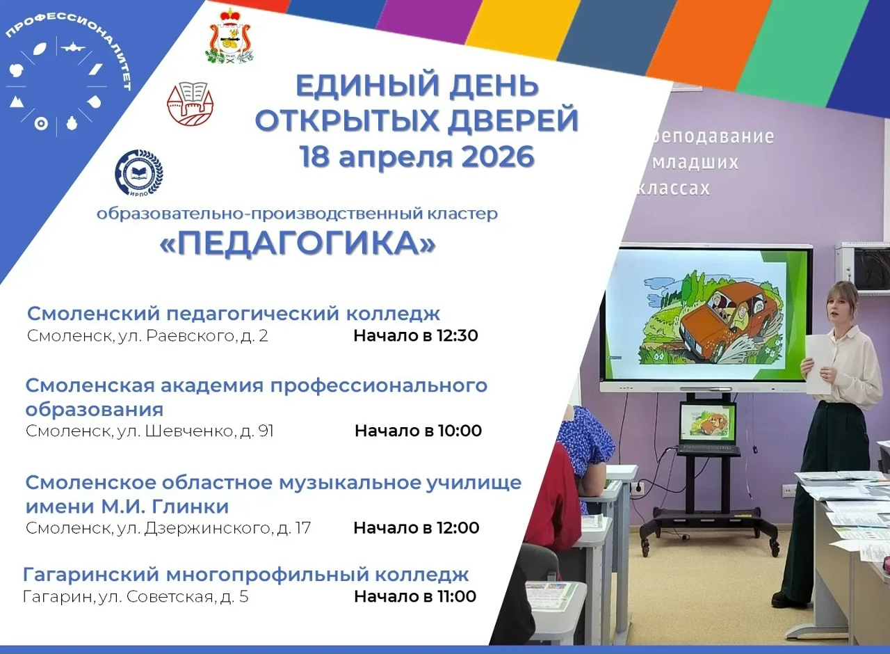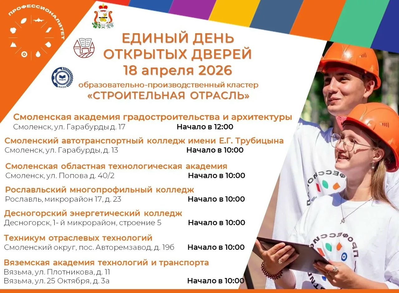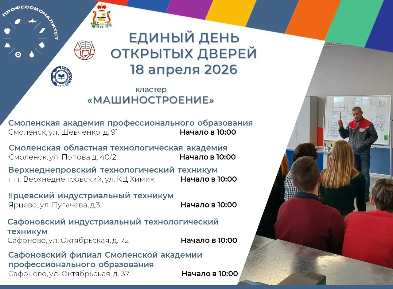 Единый день открытых дверей «Профессионалитета» пройдёт в Смоленской области 18 апреля